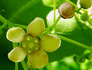 | ハシリドコロ:ナス科 上段 花の様子 下段 花が終わった後 これも触らないようにしている |