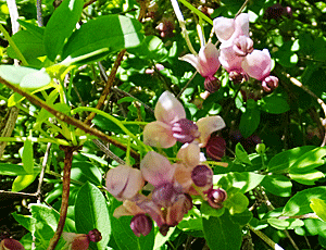 | アケビ:アケビ科 花がた〜くさんぶら下がっていた |