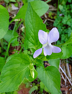 | スミレの仲間-6 奈良井へ下りると、背の高いスミレが多くなった ↑ (20cmほどの大きさ) 葉は、逆三角形型で大きい |