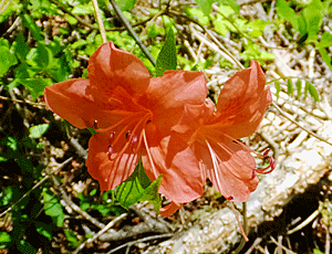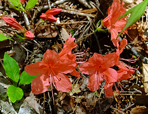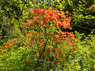 | ヤマツツジ:ツツジ科 鮮やかな色で、遠くからでもすぐ分かる ここでは満開だったが、 少し上の「森林測候所跡」の近くでは、固いつぼみ |