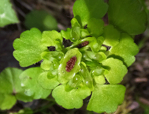 | ネコノメソウの仲間-2 ↑ 茶色い箱型が特徴 |