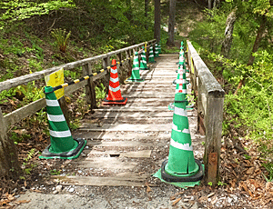 | 「森林測候所跡地」を通らない楽々道を歩いてくると、 この階段下に出る |