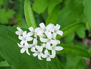 | クルマバソウ:アカネ科 左 名前どおりに、車状の葉が特徴 |