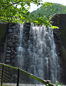| ↑ 堰堤から流れ落ちる様子 「不動の滝」より立派! |