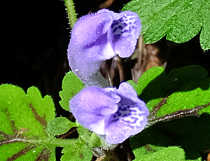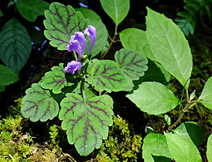 | タツナミソウ(立浪草):シソ科 上段 葉に文様なし 下段 葉に文様がある (この仲間は色々種類があるが どれも皆、同一方向を向いて花が咲くのが特徴) |