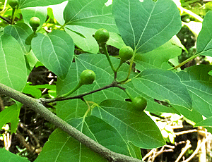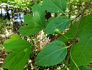 | シロモジ:クスノキ科 三つに分かれている葉っぱが特徴だが 分かれていない葉っぱも多い |
