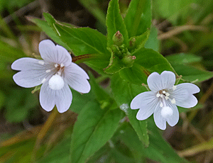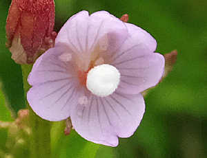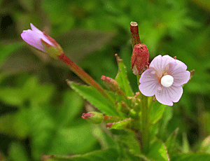 | アカバナ:アカバナ科 雌しべの先端が ぷっくら丸く膨らむのが特徴 右下 アカバナの白版 |