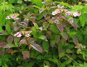 | クサアジサイ:アジサイ科 色々な色合いがある これらは残り花 |