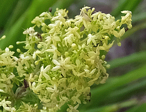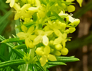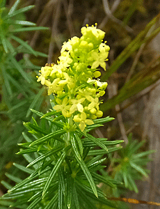 | キバナカワラマツバ:アカネ科 もこもことした花の塊りに見える よ〜くよく見ると、花びらが4枚に見えるが、 『4裂している』花だって 『いい香りがする』そうだが、まだ未経験 |
