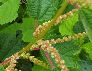 | アカゾ:イラクサ科-2 ↑ これが雄花序?確かに淡黄白色 |
