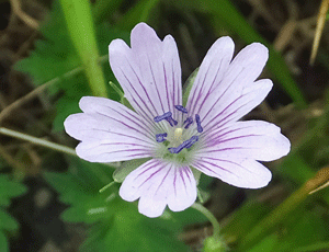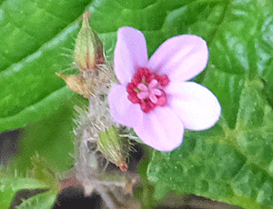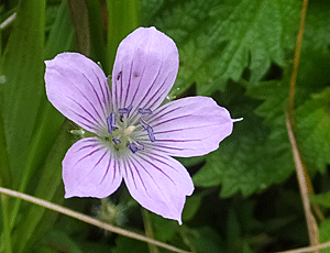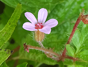 | ヒメフウロ;フウロソウ科 「石灰岩地」に生えるのが特徴 花の中を覗き込むと、う〜ん、なかなか可愛い〜 赤いのは、雄しべの葯 |