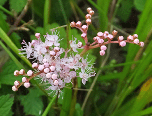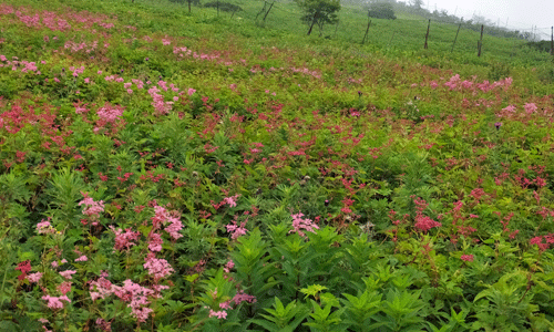 | シモツケソウ:バラ科 こんな群生は、ネットで保護された所だけ・・・ |