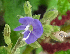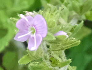 | ヒヨクソウ:オオバコ科 花は下から咲き上がっていくので 上の方にぽっちりあるだけだった ピンク色は初めて見た |