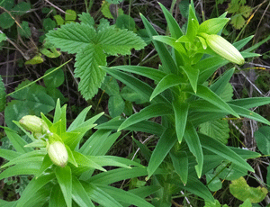 | クルマユリのつぼみかな?:ユリ科 それにしてはつぼみが白い?? |