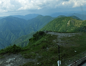 | 関ケ原駅経由大垣駅行きのバスは、15:30発 乗客はたったの2人だけだった・・・ バスの中から 「伊吹北尾根」の道を眺めたり、(左) 土砂崩れ跡の白い斜面を見たり・・・ (右) 毎年花が少なくなっていくような・・・ などと思い返したりしていた |