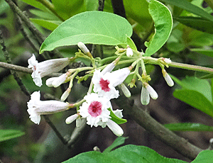 | ツクバネウツギ:スイカズラ科の萼 丁度、羽根突きの羽根の部分にそっくり 花はこんな感じ ↓ ![]() |