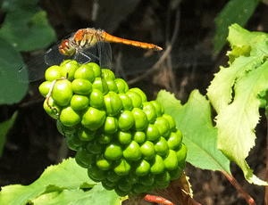 | テンナンショウの仲間 サトイモ科 マムシグサの仲間ともいう アカトンボも可愛い |