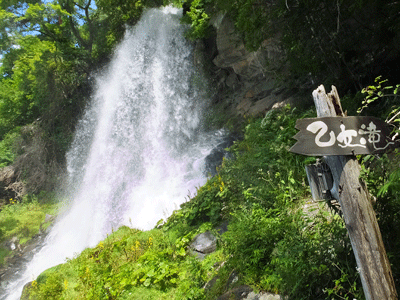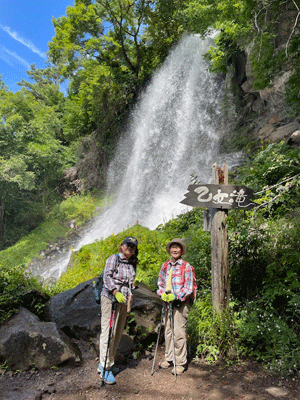 | 名こそ「乙女の滝」ながら、結構な迫力! じゃじゃうま滝に改名をという声も聞きます。 が、滝に佇む乙女ふたり^_^?やはり、乙女滝がふさわしい *撮影とコメント(YAMAZAKI) |