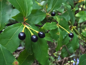 | クロモジ:クスノキ科 黒くてつやつやした 丸っこい実がたくさんなっていた |