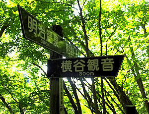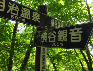 | しばらくたらたら道を歩いていくと 「横谷観音」への分岐 また、ハーハーと声を出して歩いて行った 少しの登りでも息が切れる・・・ ハーハーと声を出すと 酸素がたくさん心臓に送られるとか |